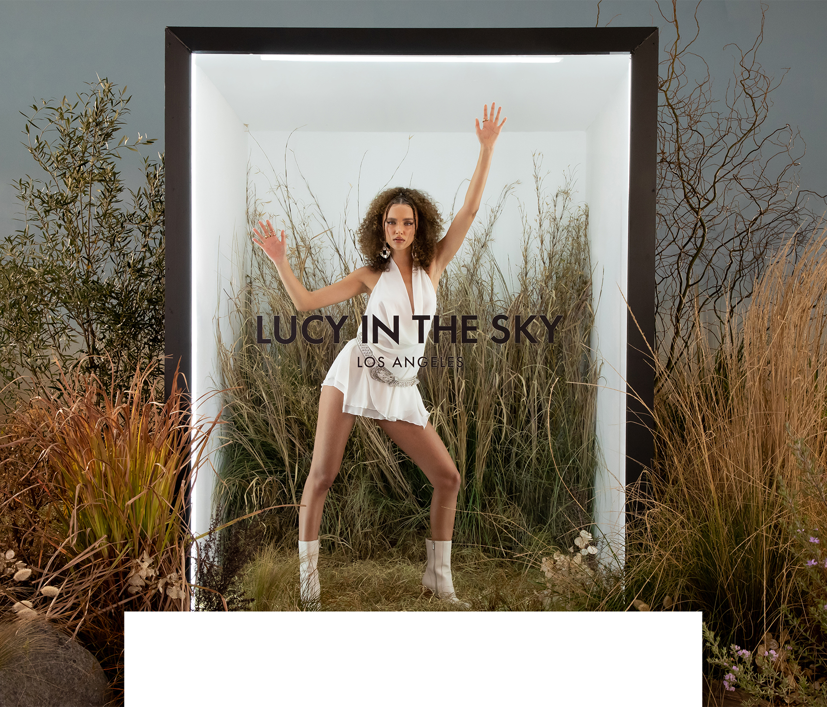 Saga jumpsuit’s plunging neckline and open back give an evening allure.