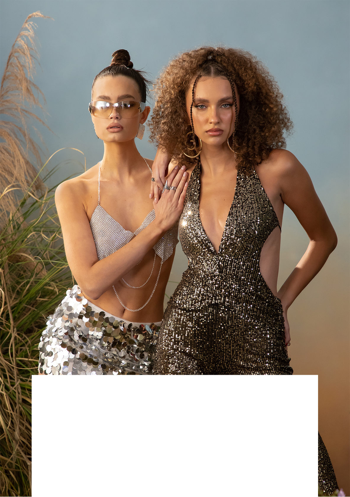 Easily style a festive ensemble by pairing basics with an unforgettable bottom like the light-reflecting